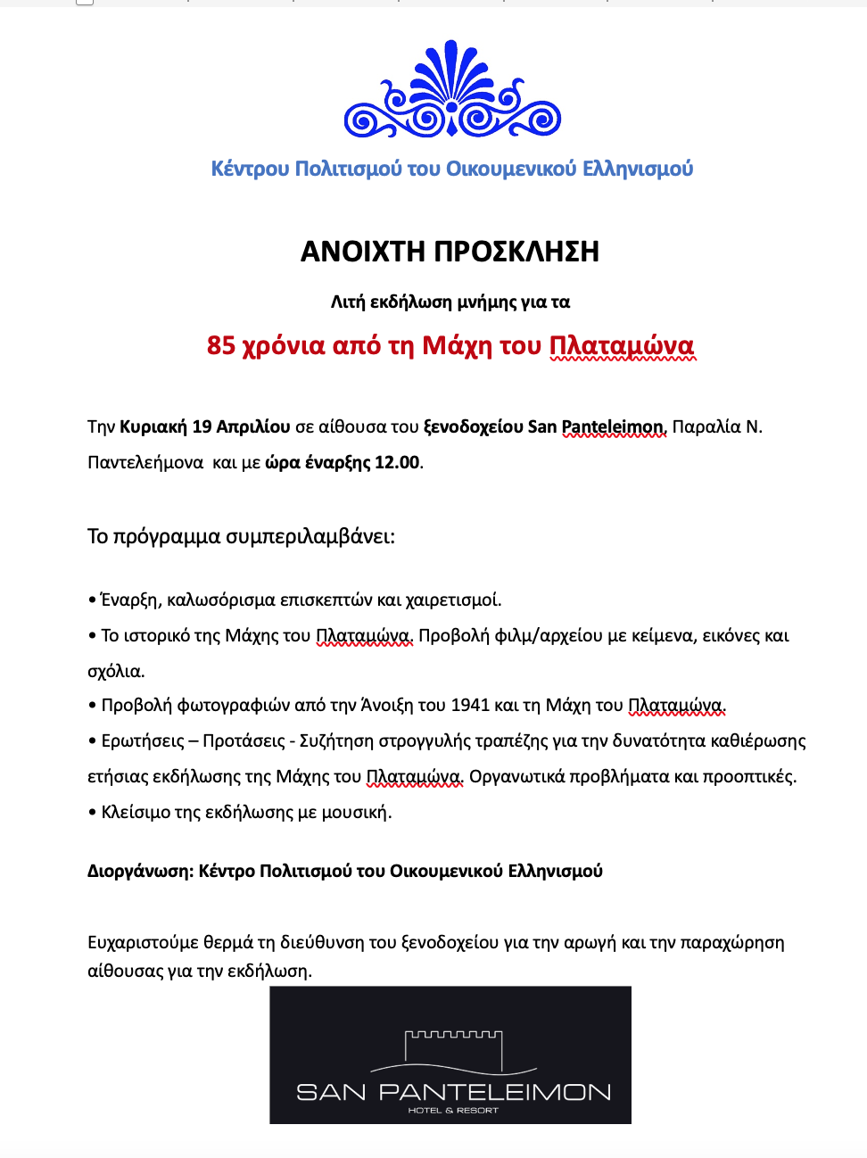 Πρόσκληση και πρόγραμμα: