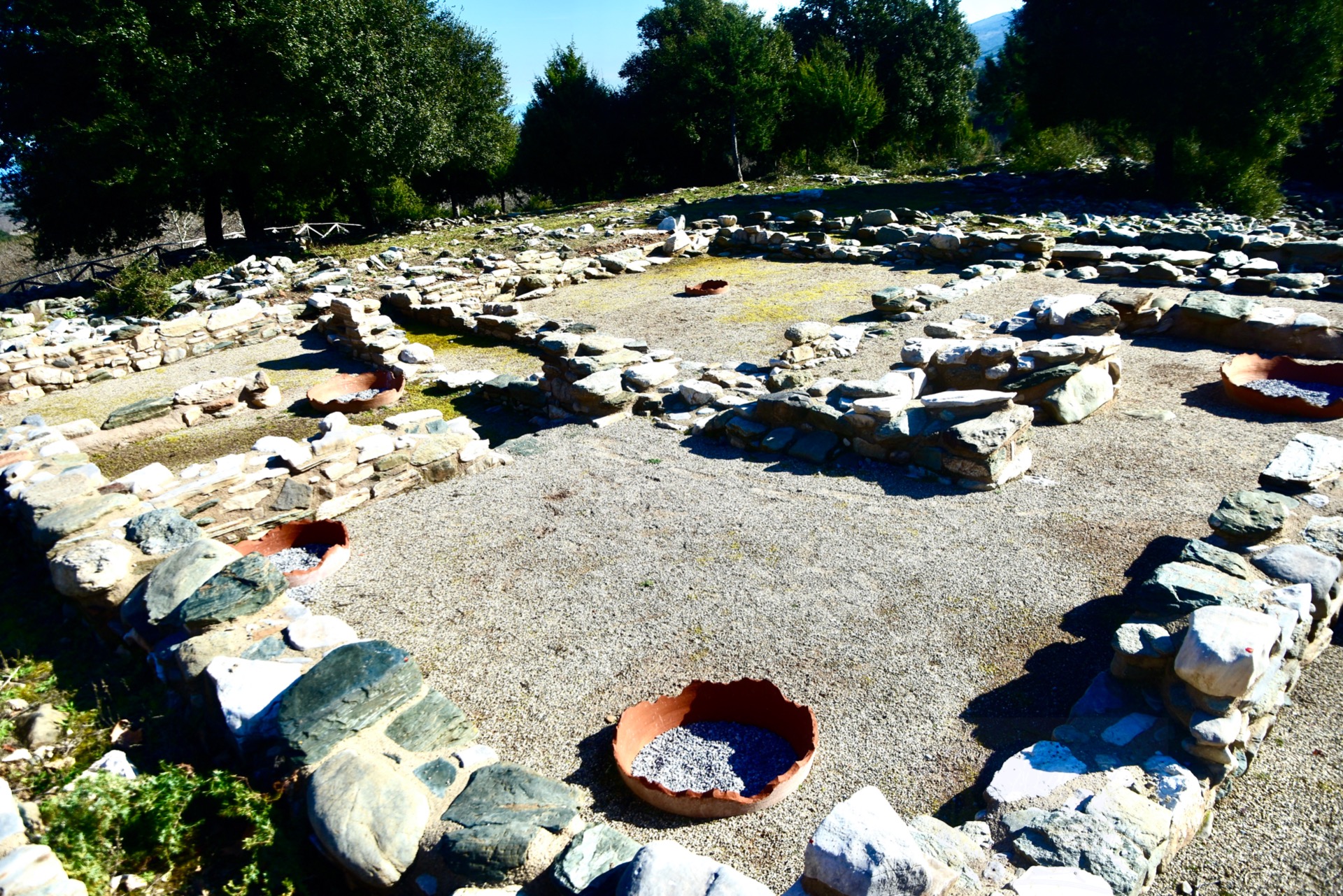 Με χαλικάκι σκεπάστηκε ο χώρος που ανασκάφτηκε, με τσιμέντο συγκολλήθηκαν και στερεώθηκαν οι πέτρες που βρέθηκαν (;). Τα δε πιθάρια που φαίνονται στη φωτογραφία είναι καινούριας κατασκευής, έντεχνα σπασμένα να προσομοιάζουν "ευρήματα".